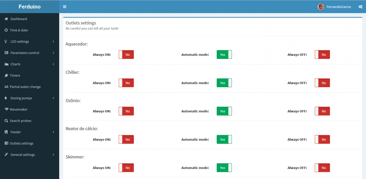 Ferduino aquarium controller (ID: 1)