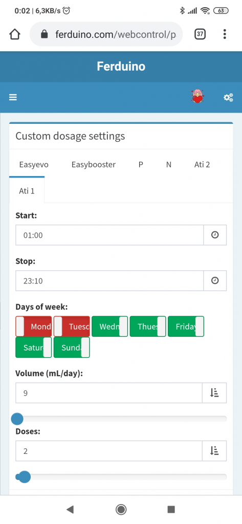 Dosing pumps settings